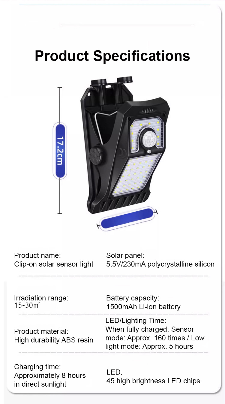 Smart sensor solar clip light✅ 100% Solar-Powered: No electricity costs! Solar-powered. Zero bills. Test it free for a week!