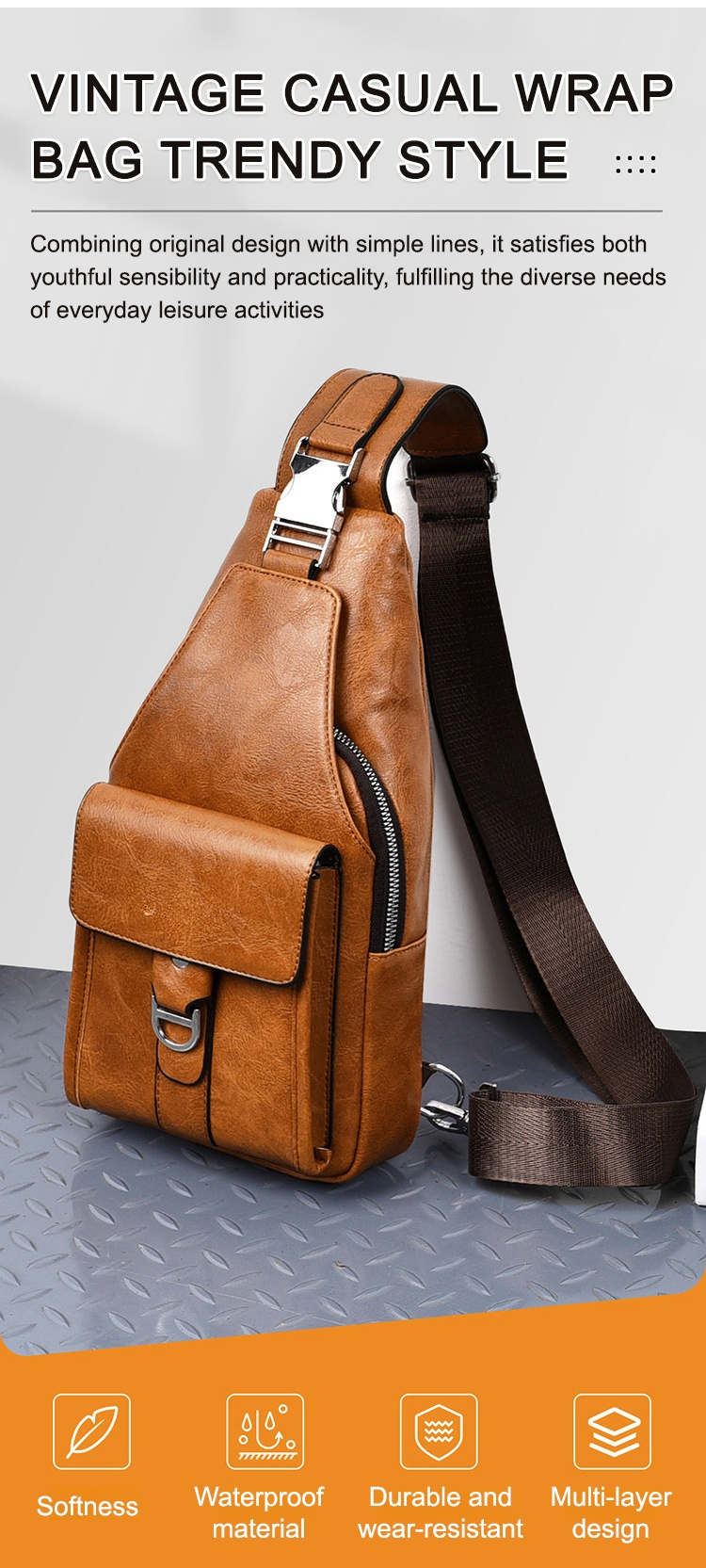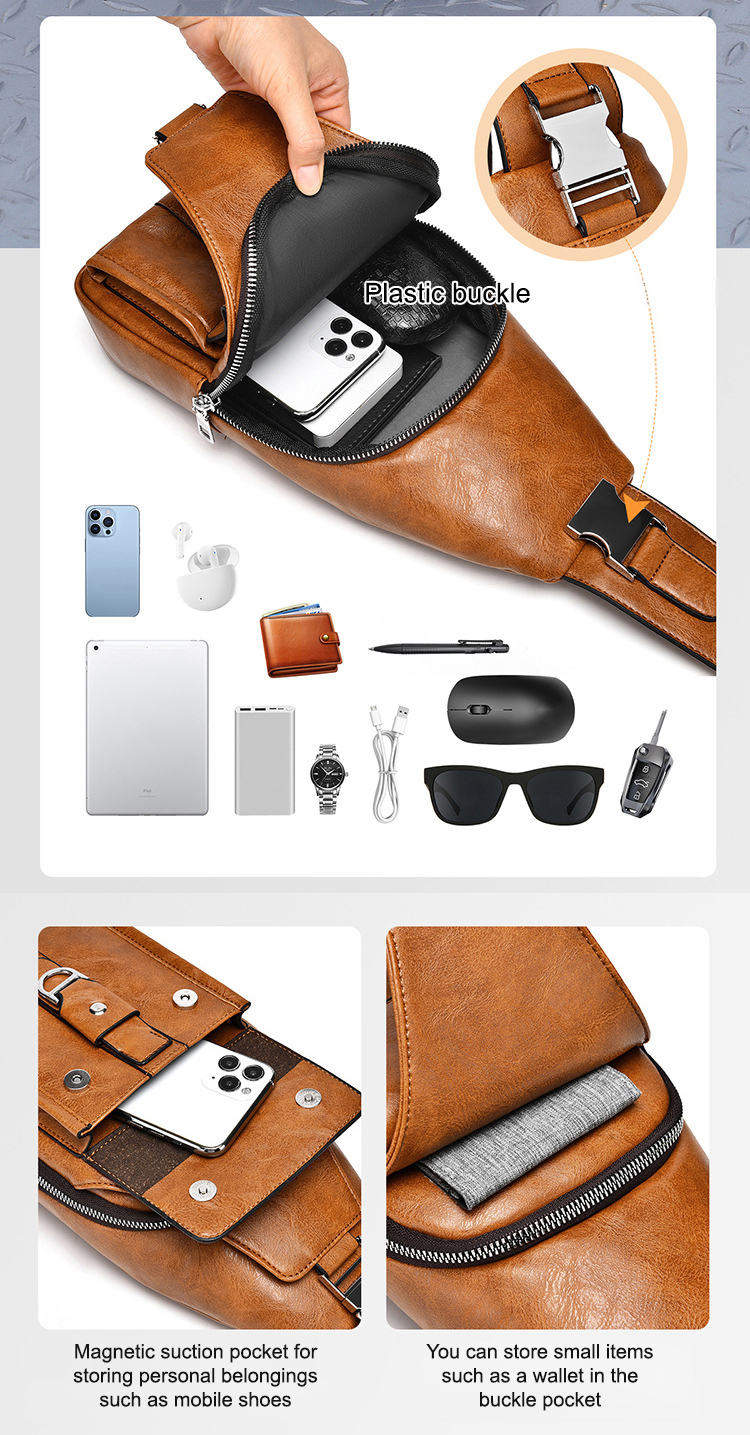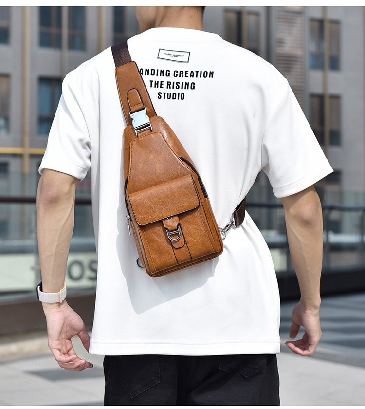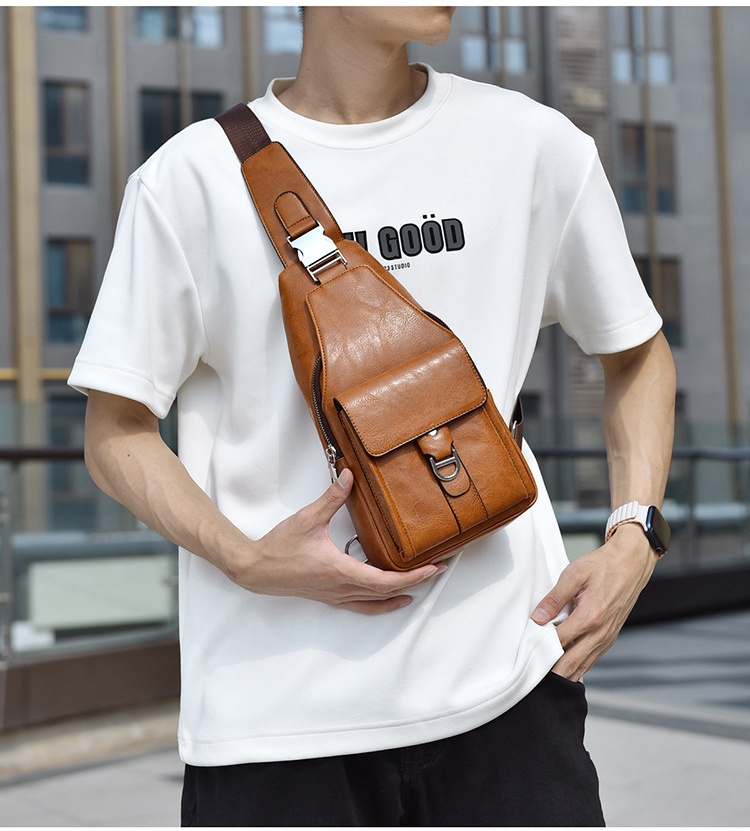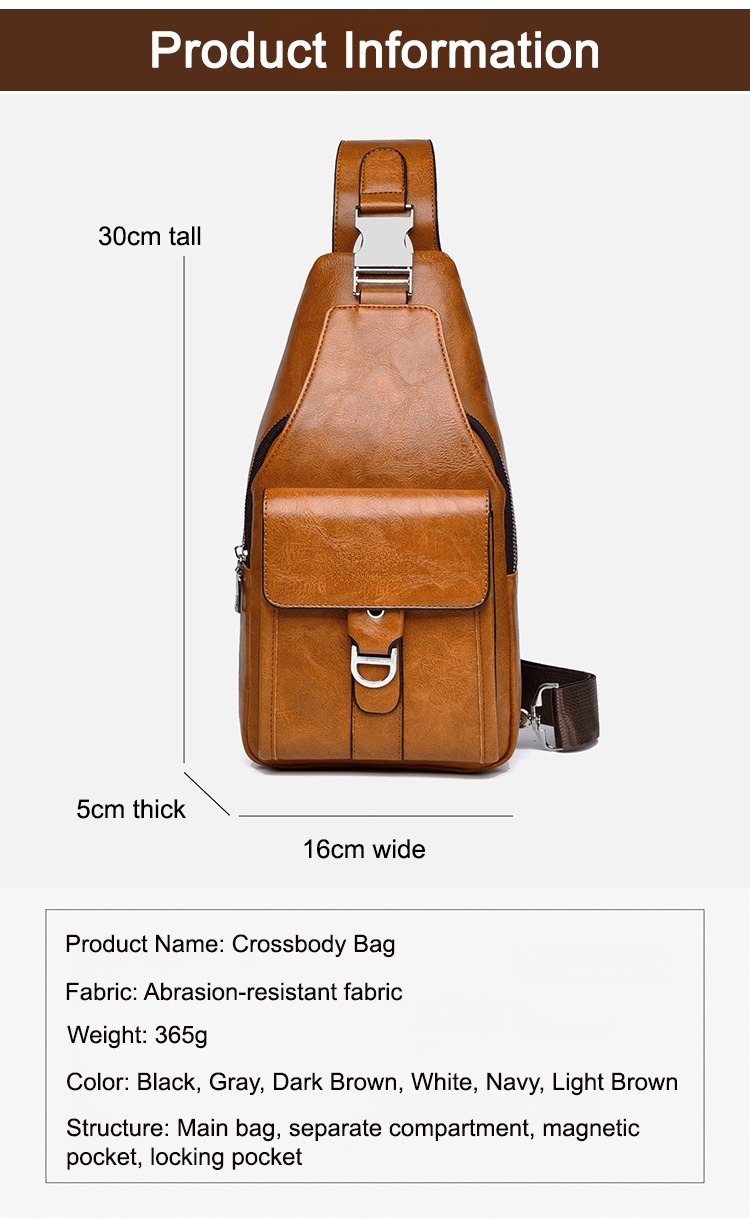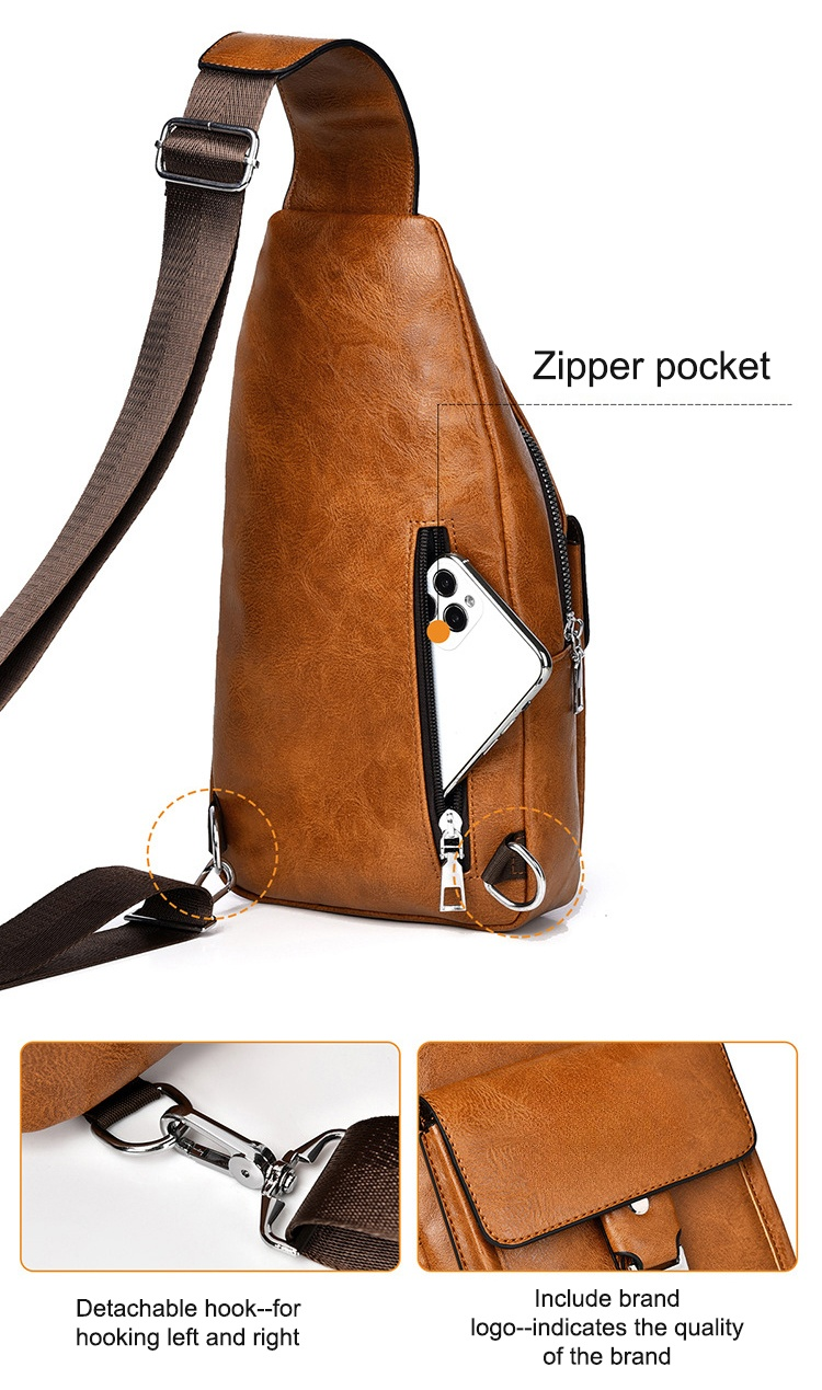 Premium genuine leather water-repellent chest bag shoulder crossbody bag