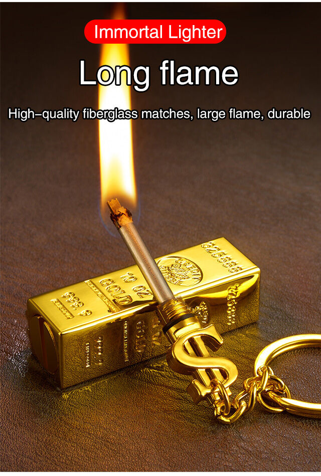 Creative Immortal Lighter 💥This is a match that you can use indefinitely!👍👍Essential Gold Bar Everlasting Matches for camping and outdoor use, keychain matches that last a lifetime.